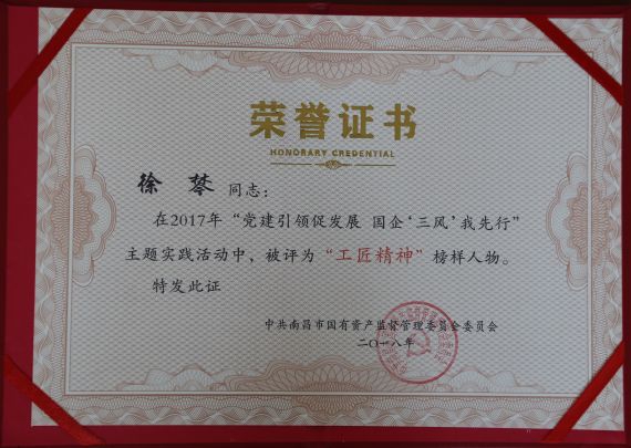在2017年度國(guó)資委組織的“黨建引領(lǐng)促發(fā)展 國(guó)企“三風(fēng)”我先行”主題實(shí)踐活動(dòng)中,陳國(guó)明同志被評(píng)為“優(yōu)秀工作者”,李家兵同志被評(píng)為“創(chuàng)新精神”榜樣人物,徐棽同志被評(píng)為“工匠精神”榜樣人物。