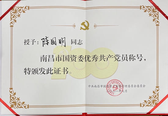 在隆重紀(jì)念中國共產(chǎn)黨成立100周年之際,南昌市國資委和南昌旅游集團(tuán)于近日對一批來自各條工作戰(zhàn)線上的優(yōu)秀黨員和優(yōu)秀黨務(wù)工作者及先進(jìn)基層黨組織進(jìn)行了表彰,獎(jiǎng)勵(lì)他(她)們在各自的工作崗位上履職盡責(zé)創(chuàng)先進(jìn)、立足崗位爭優(yōu)秀,在推動企業(yè)高質(zhì)量發(fā)展中充分發(fā)揮戰(zhàn)斗堡壘和先鋒模范作用。其中,公司陳國明同志榮獲市國資委“優(yōu)秀共產(chǎn)黨員”稱號,公司黨委被評為南旅集團(tuán)“先進(jìn)基層黨組織”,黨員職工胡穎明、徐小蘭、王昕、王貞同志獲南旅集團(tuán)“優(yōu)秀共產(chǎn)黨員”稱號。